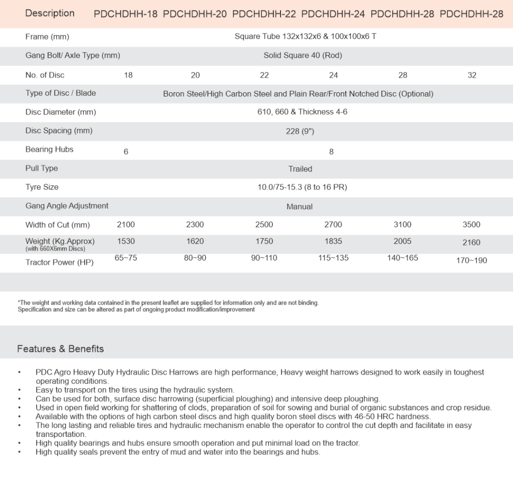 PDC Agro’s Heavy Duty Hydraulic Disc Harrow boasts a robust design, ensuring efficient soil cultivation. With precise control, this equipment stands as a reliable choice for achieving optimal agricultural productivity.