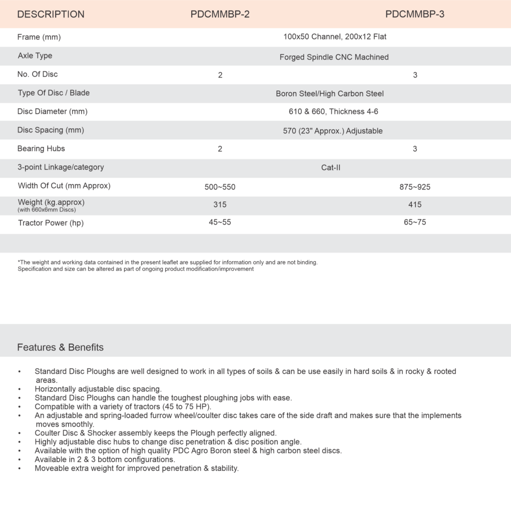The Standard Disc Plough by PDC Agro is a sturdy and reliable agricultural implement designed for efficient soil turning. Its robust construction ensures durability, making it an ideal choice for optimal seedbed preparation and enhanced crop cultivation.