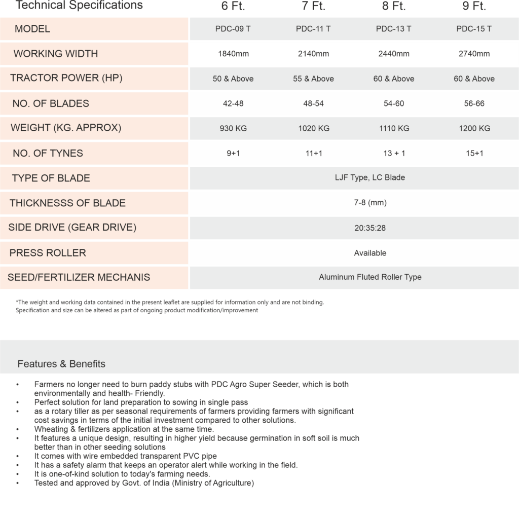• Farmers no longer need to burn paddy stubs with PDC Agro Super Seeder, which is both environmentally and health- Friendly.